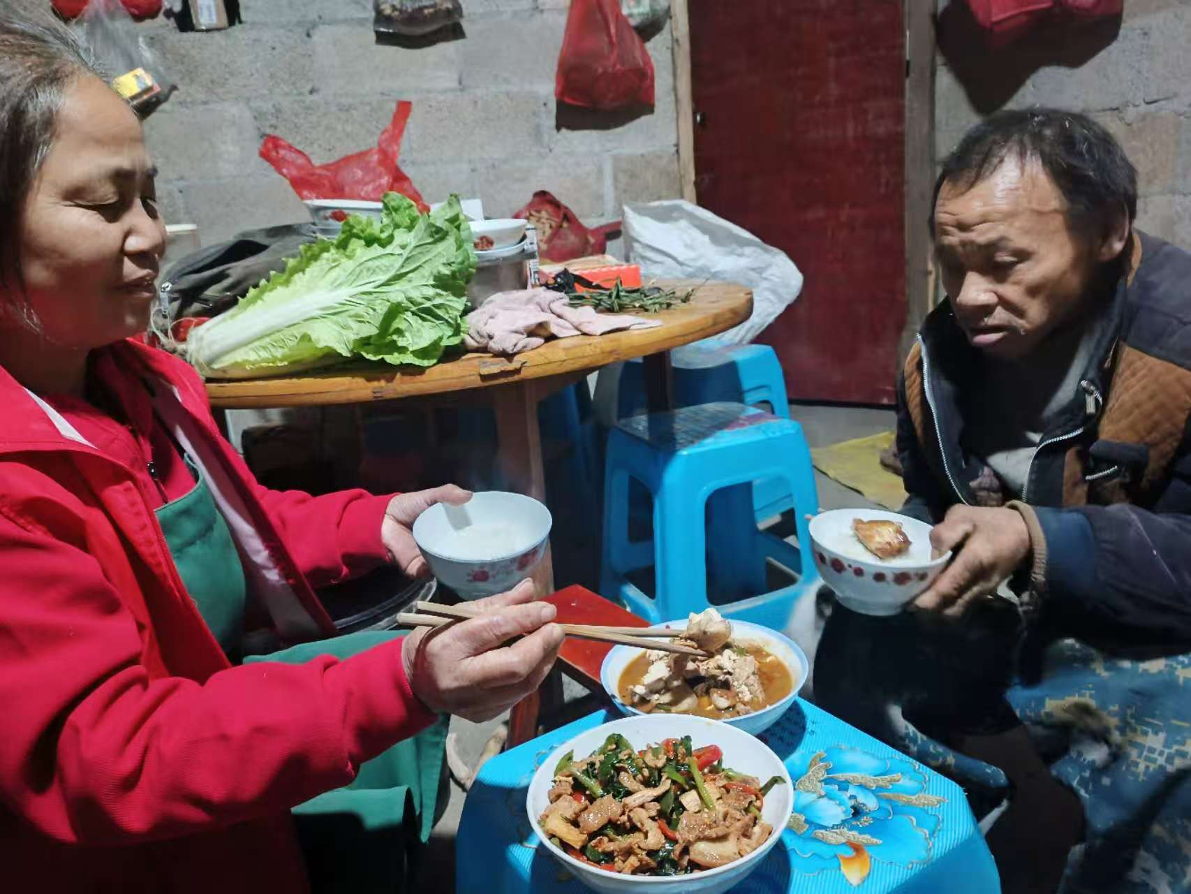 秦皇岛杨庄头村,志愿者邀请7位老人到志愿者自家开设的面馆中包饺子,还统一给老人们修剪头发。